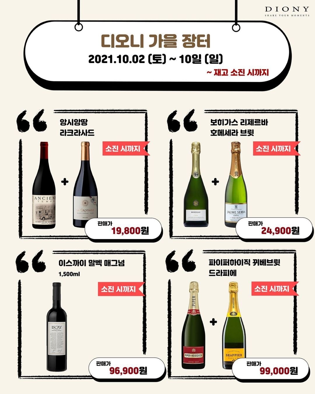이번 디오니스토어 가을장터 요일별 할인 와인 추천에 이어 이번엔 전 기간 동안 할인이 들어가는 와인 중에서 추천할 만한 것들을 소개해드립니다.